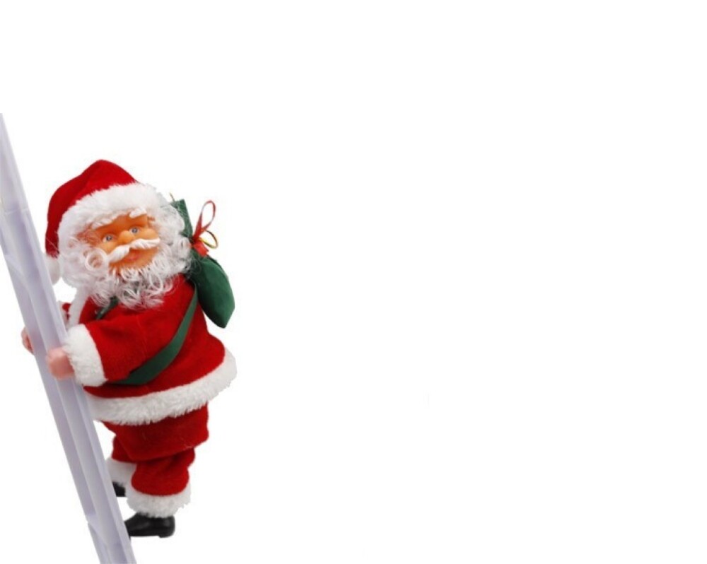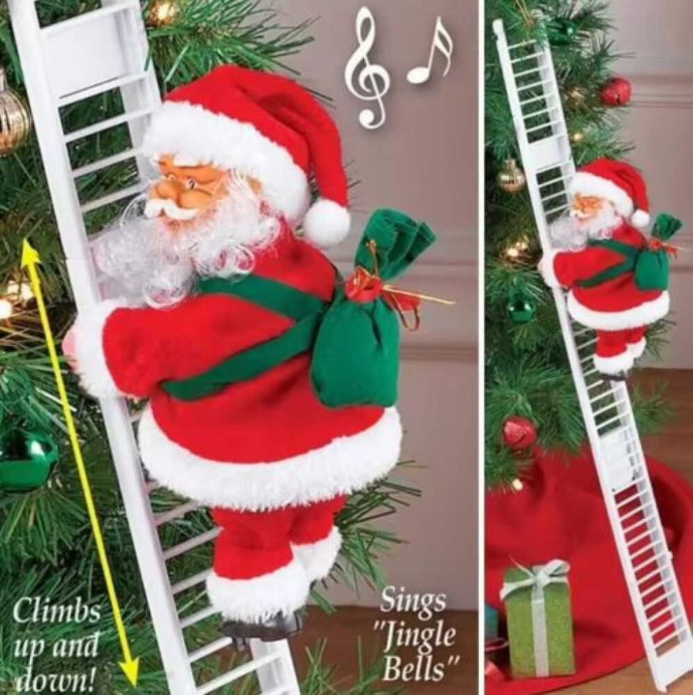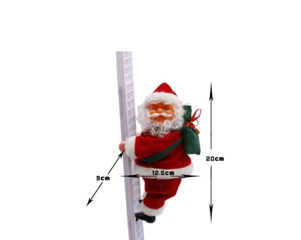 Електрическа играчка Дядо Коледа SD25, която се катери и слиза по бяла стълба с височина 70 см. Той е с усмихнато лице, традиционен червен костюм, черни обувки и зелен чувал с подаръци. Размерите на играчката са 20 х 9 х 12,5 см. Добавя движение, музика (вградена мелодия "Merry Christmas") и празнично настроение към коледната декорация. Стълбата е разглобяема (от 3 части) и е подходяща за елха, стена, врата или прозорец. Работи с 3 х АА батерии.