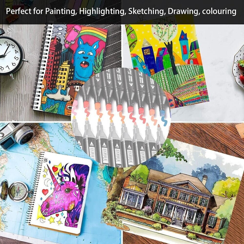 ✅ Двоен Връх за Максимална Гъвкавост: Всеки маркер разполага с два върха – фин връх за прецизни контури и детайли, и широк/четков връх за бързо запълване и плавни преливания.