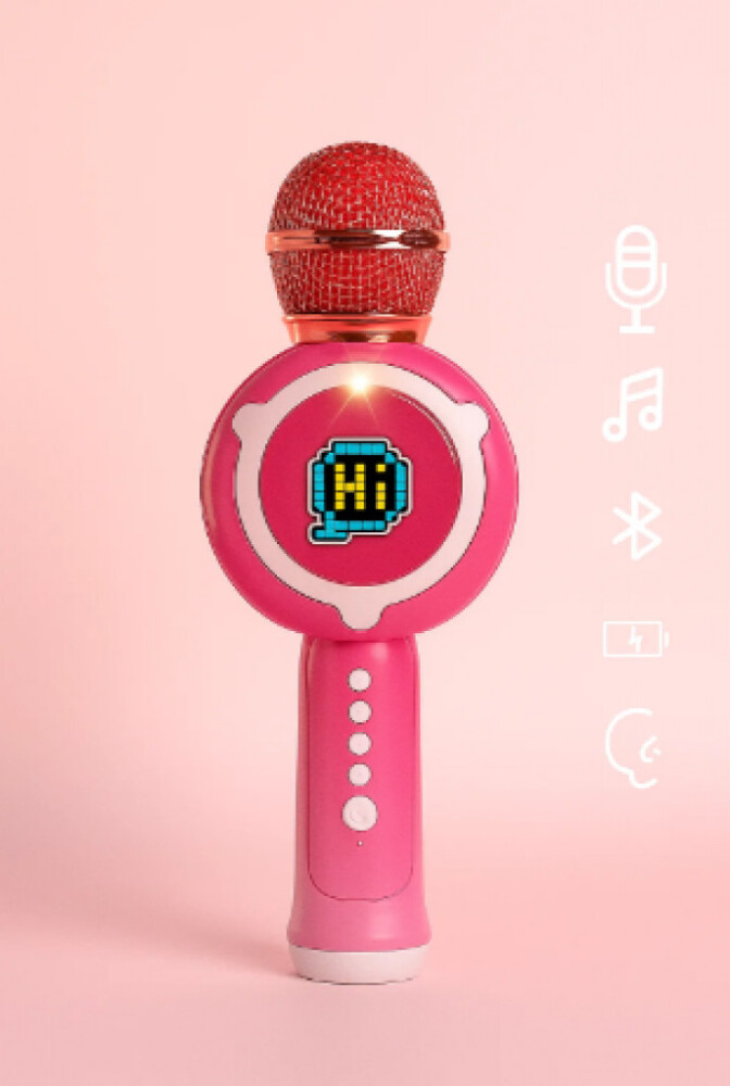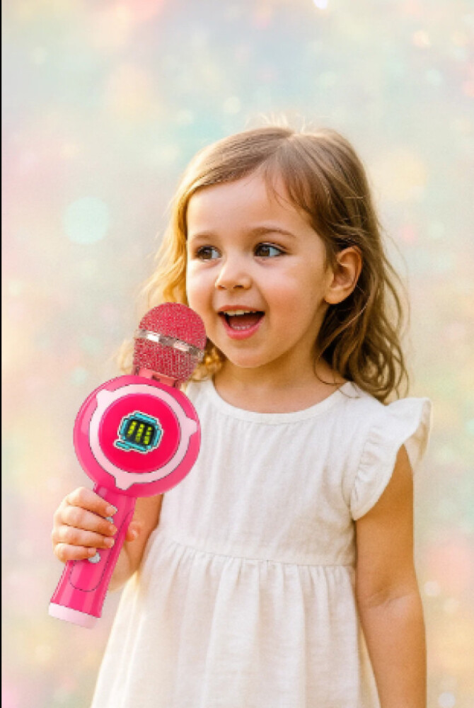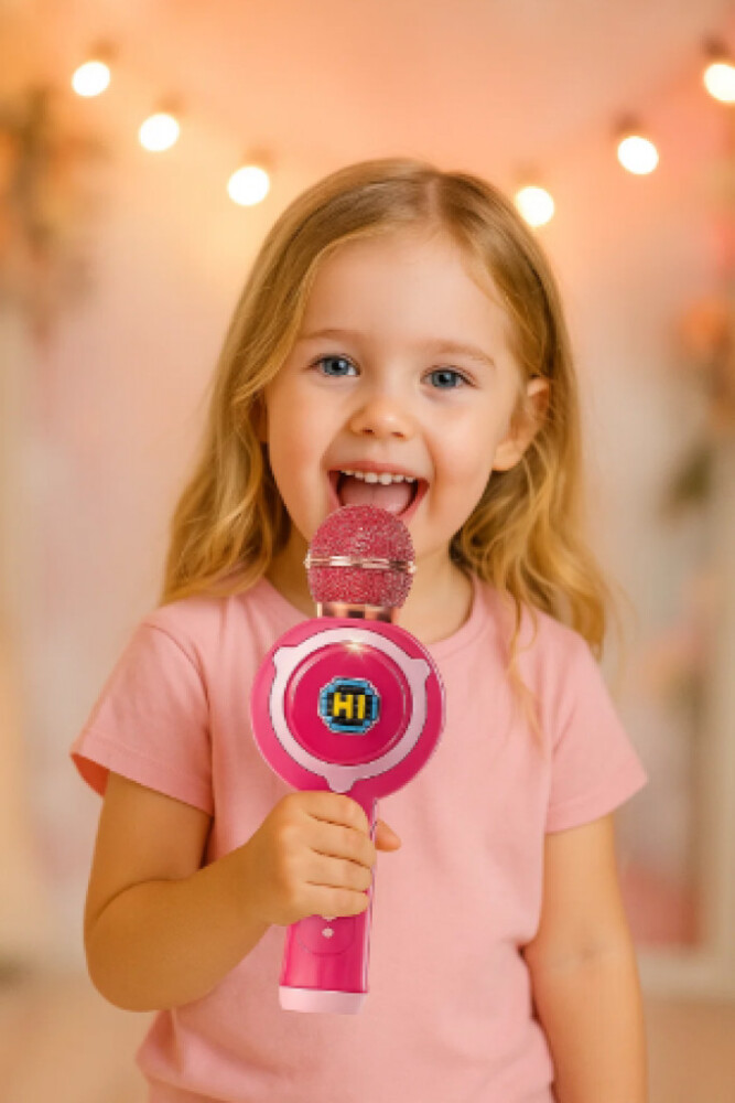 Подарете на малките музикални таланти идеалния инструмент за изява – този безжичен караоке микрофон! Създаден за деца над 3 години, той съчетава забавление, светлинни ефекти и обучение чрез музика. Този розов микрофон е перфектният подарък за всяко момиченце, което обича да пее, да се изявява и да бъде в центъра на вниманието.
