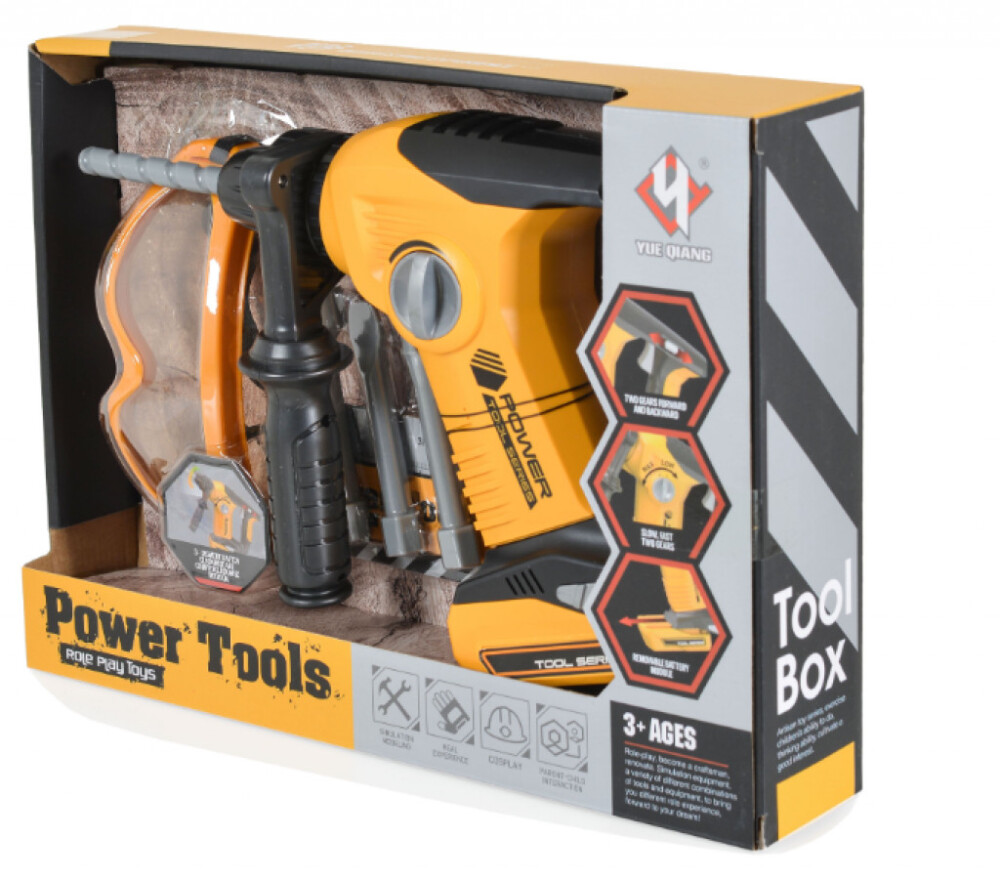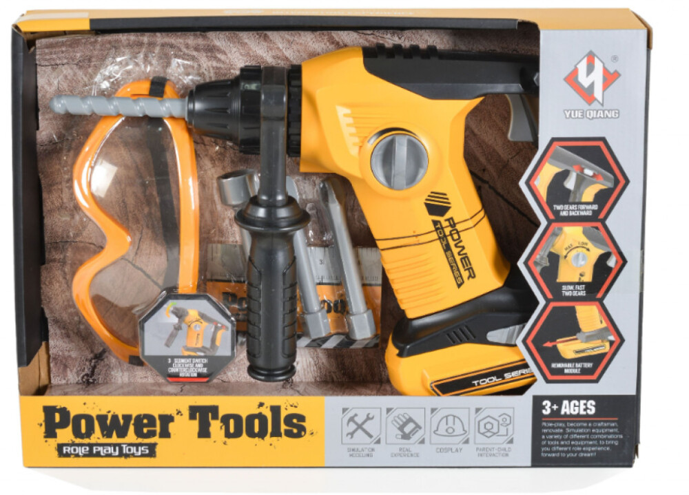 Реализъм: При натискане на бутона, бормашината издава реалистичен звук и активира светлинен ефект, имитирайки истинска ударна бормашина. Има и въртяща се част.
