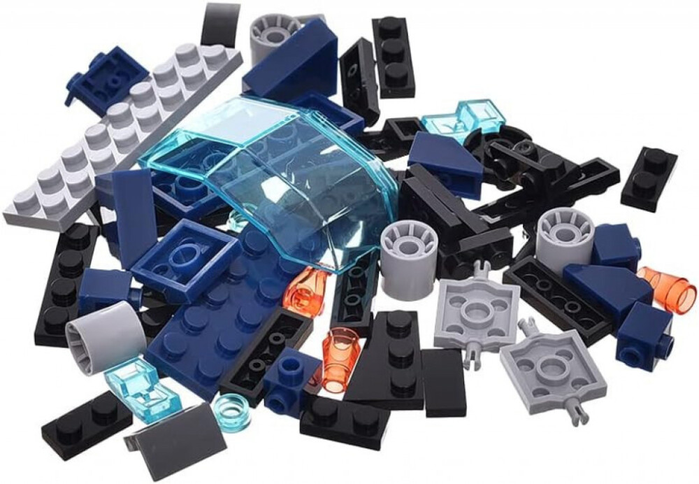 Мащабна Сцена: Позволява изграждането на два основни модела – футуристичен полицейски хеликоптер (в тъмносиньо/черно) и агресивен пиратски космически кораб (в черно/оранжево).