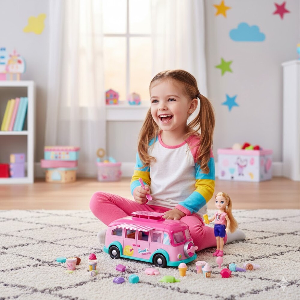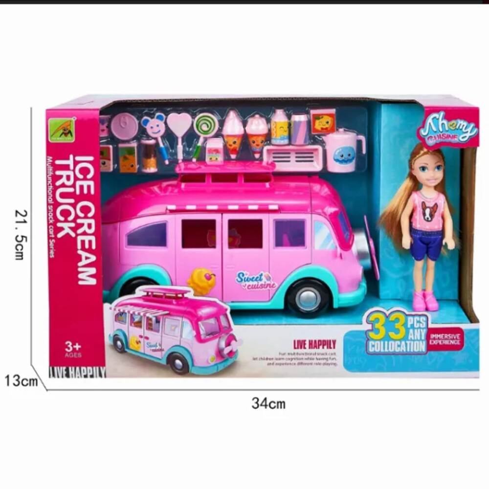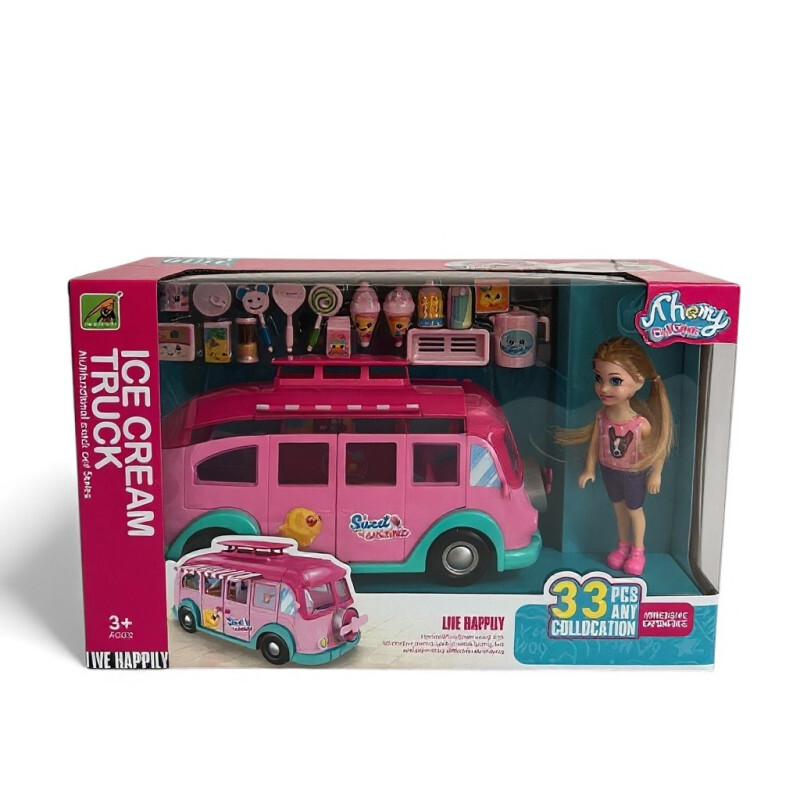 Време е за сладко приключение! Този атрактивен комплект Камион за сладолед с кукла е идеален за часове творческа и ролева игра. Насърчава въображението и уменията за разказване на истории, докато децата се превръщат в собственици на най-сладкия бизнес в града!