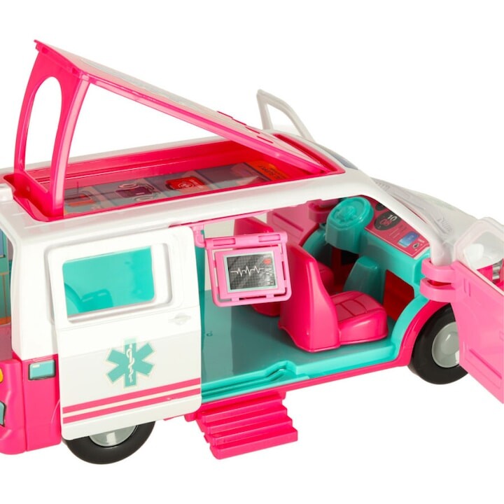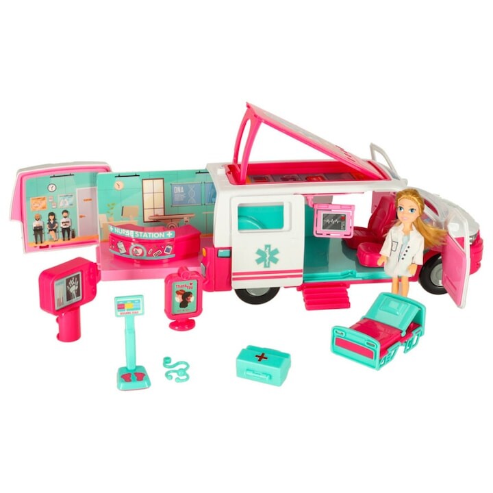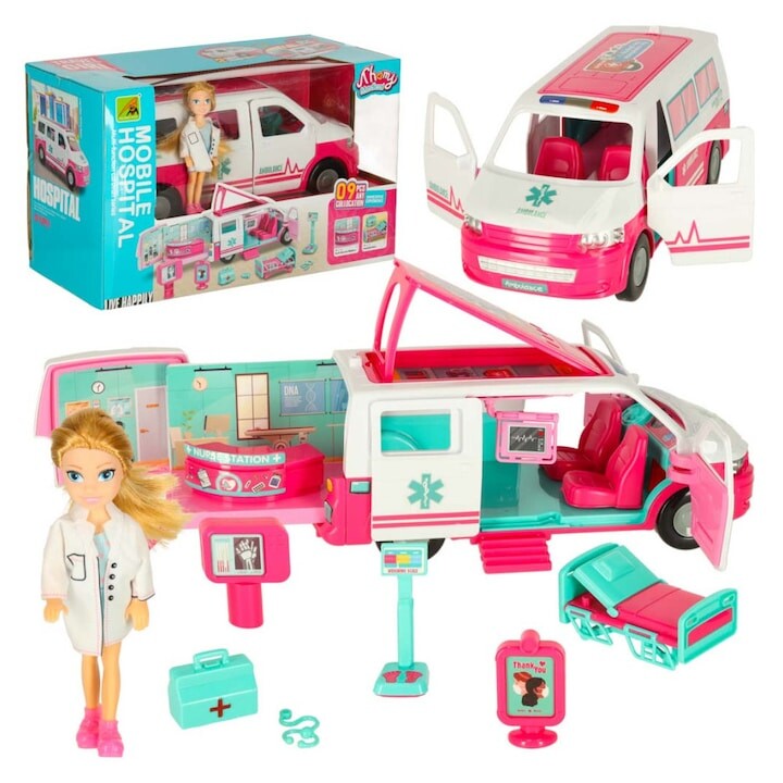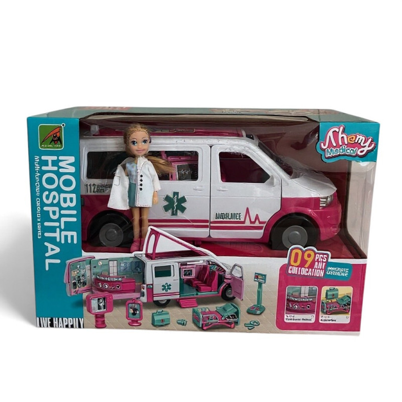 Преобразете времето за игра в образователно и ангажиращо преживяване с комплекта "Ambulance - Mobile Hospital"! Тази пълнофункционална розово-бяла линейка лесно се отваря и трансформира в напълно оборудвана мобилна болница. Комплектът включва кукла лекар и богат набор от медицински аксесоари.