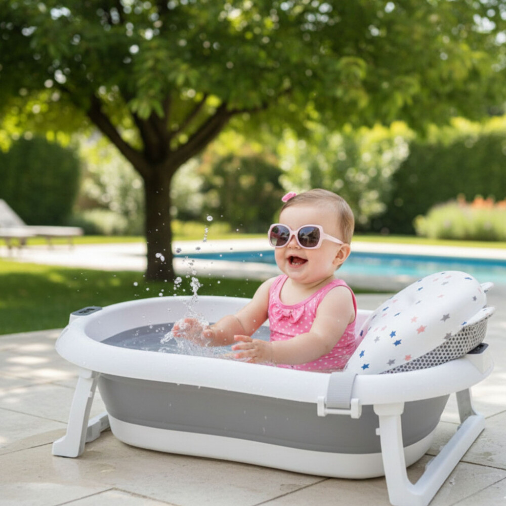 Превърнете къпането в любим момент с нашата сгъваема бебешка вана с вграден термометър. Проектирана с мисъл за безопасността, тя разполага с прецизен LCD дисплей за контрол на температурата и мека възглавница, която поддържа бебето в правилна позиция. Благодарение на сгъваемия си дизайн, ваната е идеална за малки жилища и пътувания.