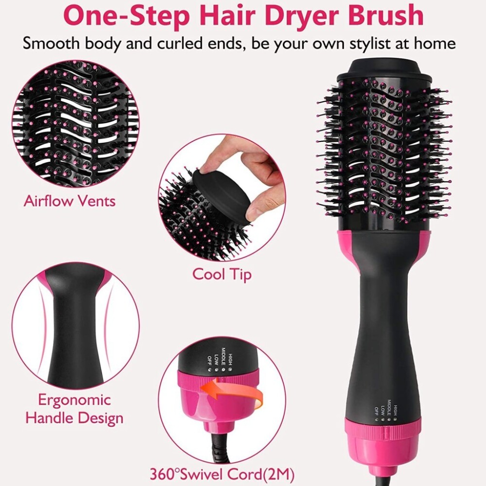 Постигнете резултати като от фризьорски салон само с един уред! Четката-сешоар 2 в 1 е иновативен мултистайлър, който замества традиционния сешоар, четката за коса, пресата и машата. С нея можете едновременно да подсушавате и оформяте косата си, придавайки ѝ зашеметяващ обем, копринена гладкост и естествен блясък. Уредът е подходящ за всеки тип коса и е еднакво ефективен както върху влажни, така и върху сухи кичури.
