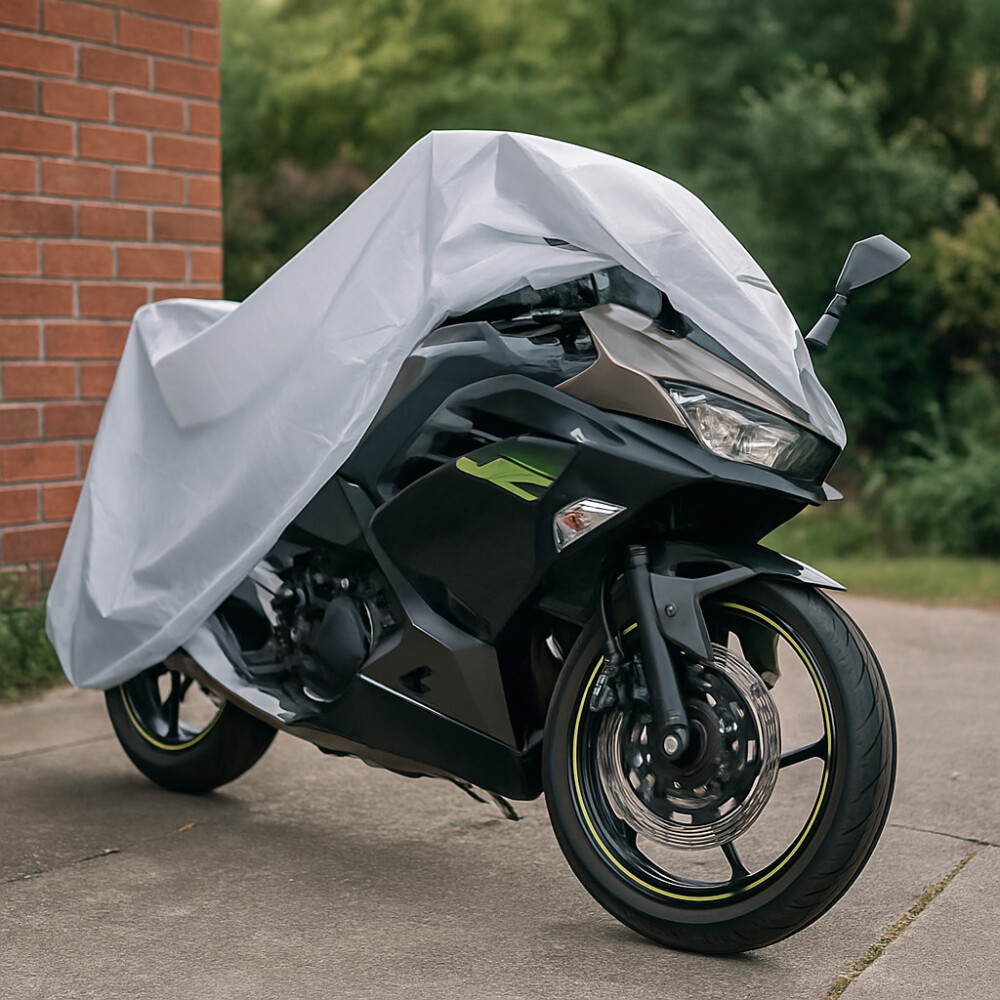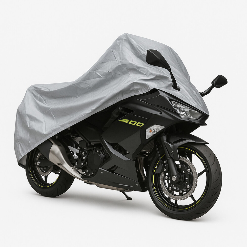 Със своя стилен сребристо-сив цвят и прецизна кройка, покривалото се адаптира към формата на спортни и стандартни мотоциклети, придавайки естетически завършен вид дори когато е покрит. Дизайнът е практичен и функционален – частичното покриване може да разкрие важни зони (като седалка или резервоар), без да е необходимо пълно сваляне. Подходящ както за градска среда, така и за паркиране в двор или гараж, това покривало подчертава грижата за мотора ви дори когато не сте на път.