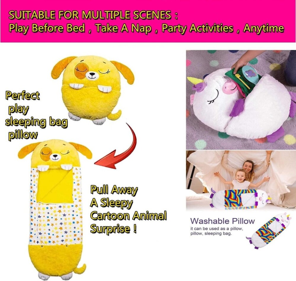 Продуктът е 2 в 1 - забавна възглавница за игра по всяко време на деня. Въпреки това, когато дойде време за дрямка, той може да се трансформира в спален чувал за секунди. Това прави спалните чували Happy Nappers идеални за различни поводи. Идеални за почивка пред телевизора или докато четете книга.
