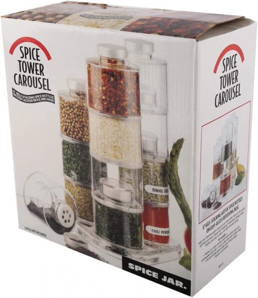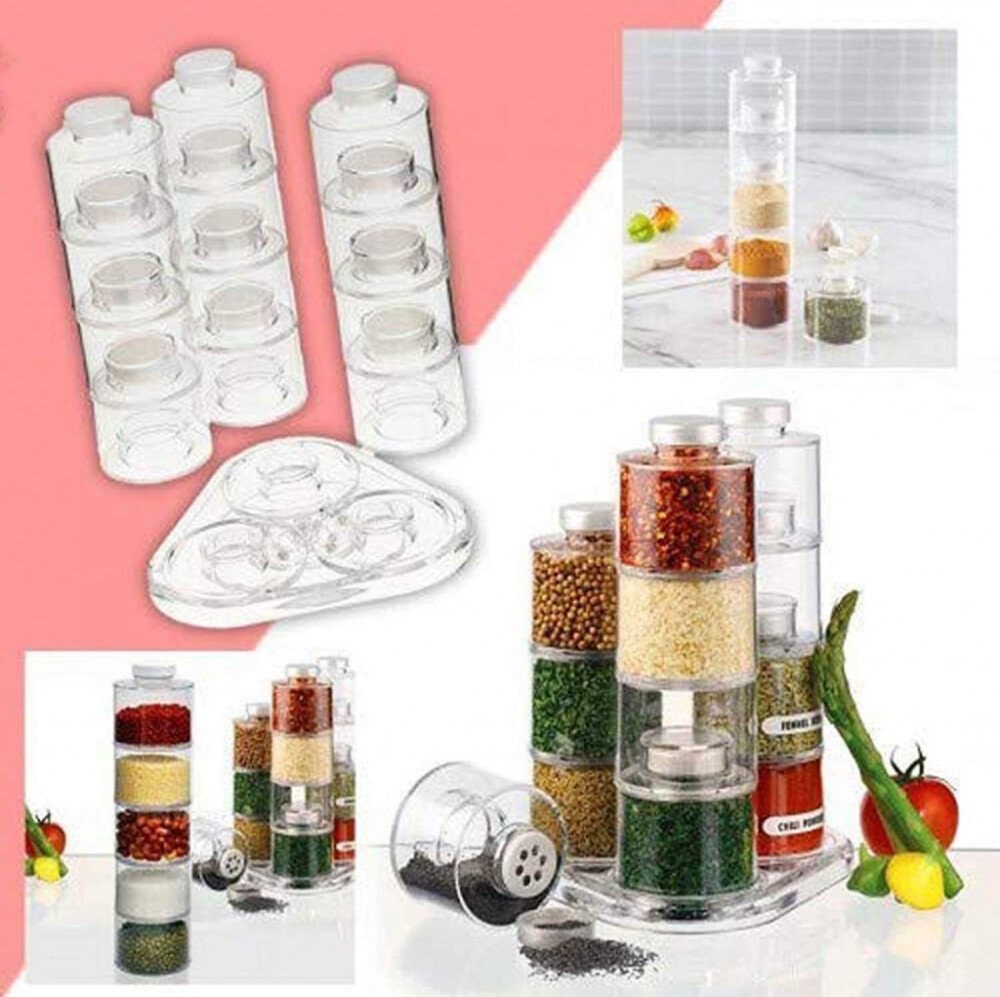 Прекратете безпорядъка в кухнята с този практичен въртящ се органайзер за подправки. Той е перфектното решение, за да имате всички подправки подредени и леснодостъпни. Комплектът включва 12 самоподреждащи се бурканчета, които се подреждат едно върху друго, спестявайки ценно място на плота.