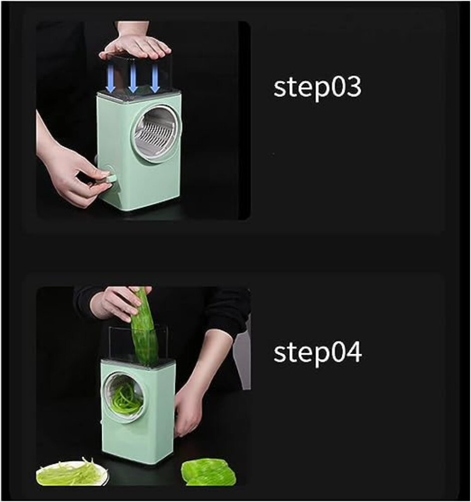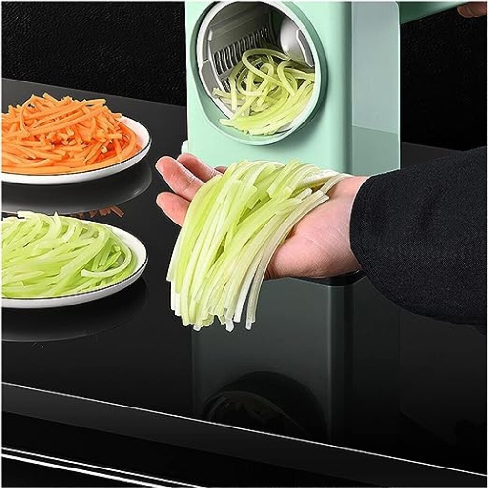 С това многофункционално ръчно ренде ще преобразите готвенето в удоволствие! Този универсален кухненски помощник е снабден с 4 сменяеми приставки от неръждаема стомана за бързо и лесно нарязване и настъргване. С него можете да правите перфектни резенчета домати и краставици, да настъргвате сирене, ядки и зеленчуци за салати, или да приготвяте картофено пюре. Здравата дръжка и стабилната основа със силно засмукване гарантират комфорт и сигурност по време на работа. Компактният дизайн го прави лесен за съхранение
