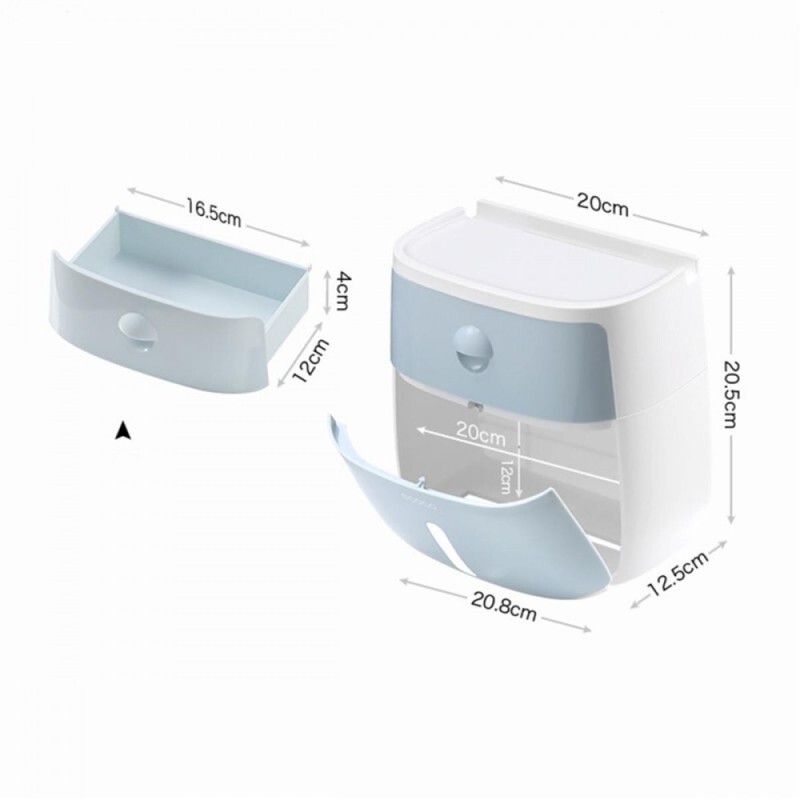 Преобразете банята си с тази водоустойчива поставка за тоалетна хартия с чекмедже! Изработена от здрава пластмаса, тя не само предпазва хартията от влага, но и предлага допълнително място за съхранение. Разполага с двойни отвори, което я прави подходяща както за рула, така и за сгънати кърпи. Чекмеджето е идеално за съхранение на дребни предмети, а горният рафт може да се използва за поставка на телефон, таблет или декорация. Прозорчето отпред ви позволява лесно да следите количеството хартия. Монтажът е бърз и лесен – чрез залепване.