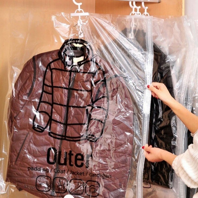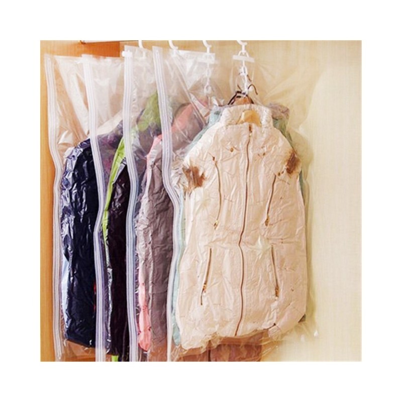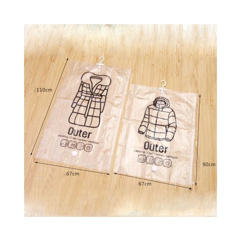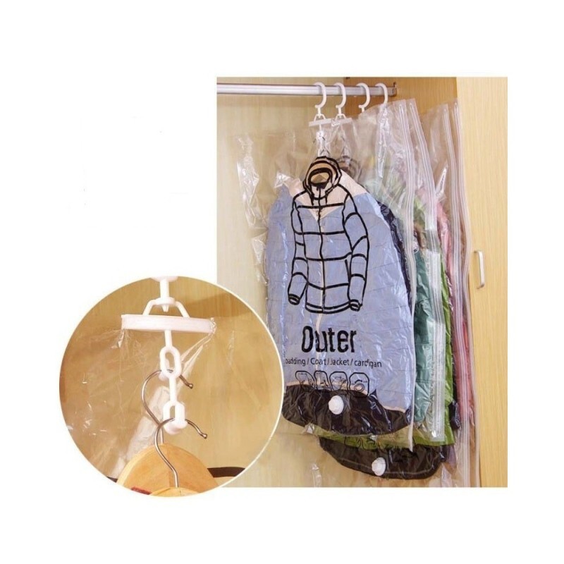 Оптимизирайте пространството в гардероба си с тези вакуумиращи пликове със закачалка. Идеални за съхранение на обемни дрехи, те херметически се затварят, предпазвайки съдържанието от влага, вредители и замърсявания. Специалният дизайн със закачалка ви позволява лесно да ги окачите в гардероба, спестявайки ценно място. Тези пликове са перфектното решение както за дома, така и за пътуване, тъй като компресират дрехите ви, освобождавайки допълнително място в куфара. Предлагат се в два размера: 90x67 см и 110x67 см.