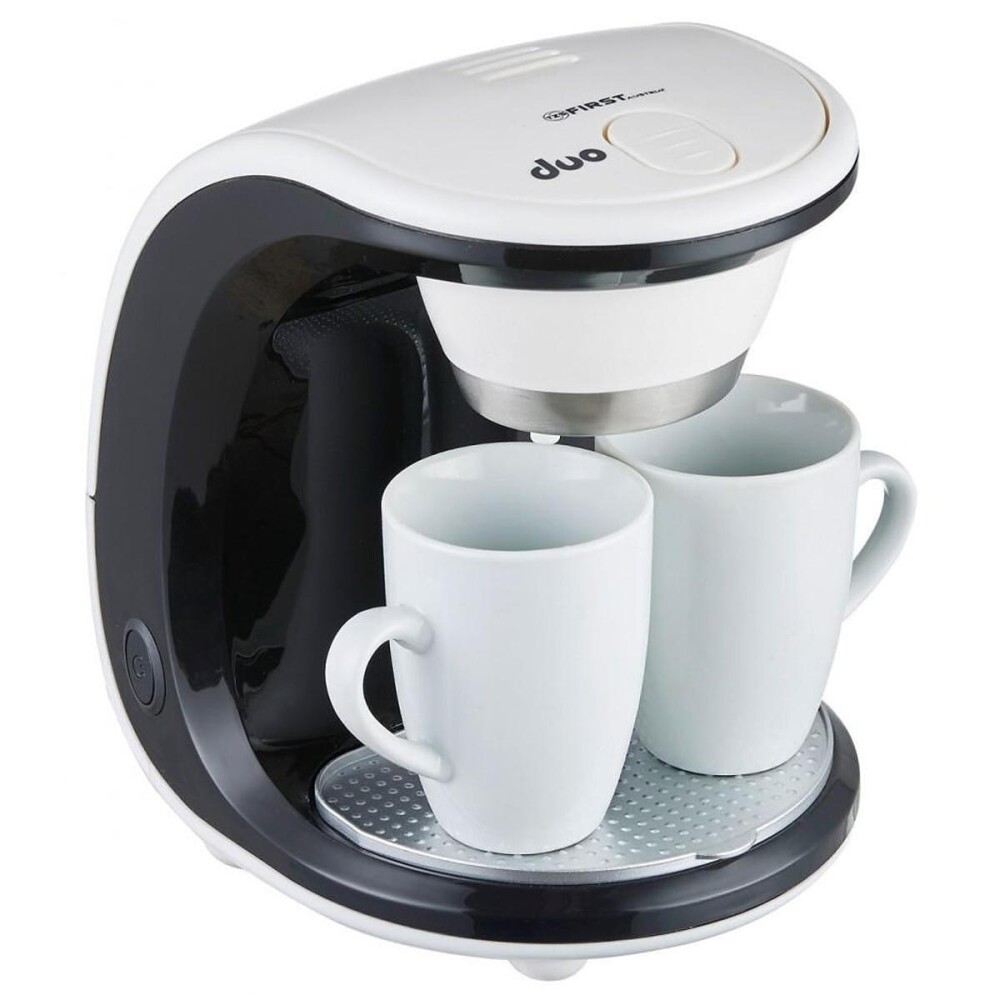 Компактна кафемашина FIRST FA-5453-2 за две чаши с мощност 450W. Лесна за употреба и почистване благодарение на подвижния филтър. Две порцеланови чаши са включени в комплекта. Идеална за всекидневна употреба у дома или в офиса.