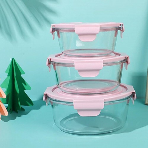 Комплект от три стъклени кутии за съхранение на храна с херметически капаци. Изработени от висококачествено стъкло, те не отделят вредни вещества, което ги прави здравословна алтернатива на пластмасовите съдове. Плътно затварящите се капаци с щипки гарантират, че храната ще остане свежа за по-дълго време, като не пропускат въздух. Комплектът е подходящ както за съхранение вкъщи, така и за пренасяне на обяд. Включва кутии с вместимост 420 мл, 660 мл и 850 мл.