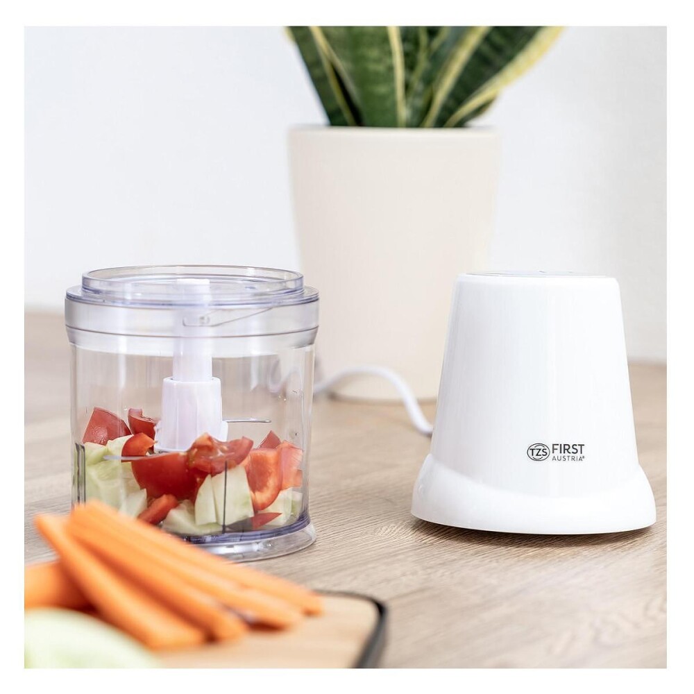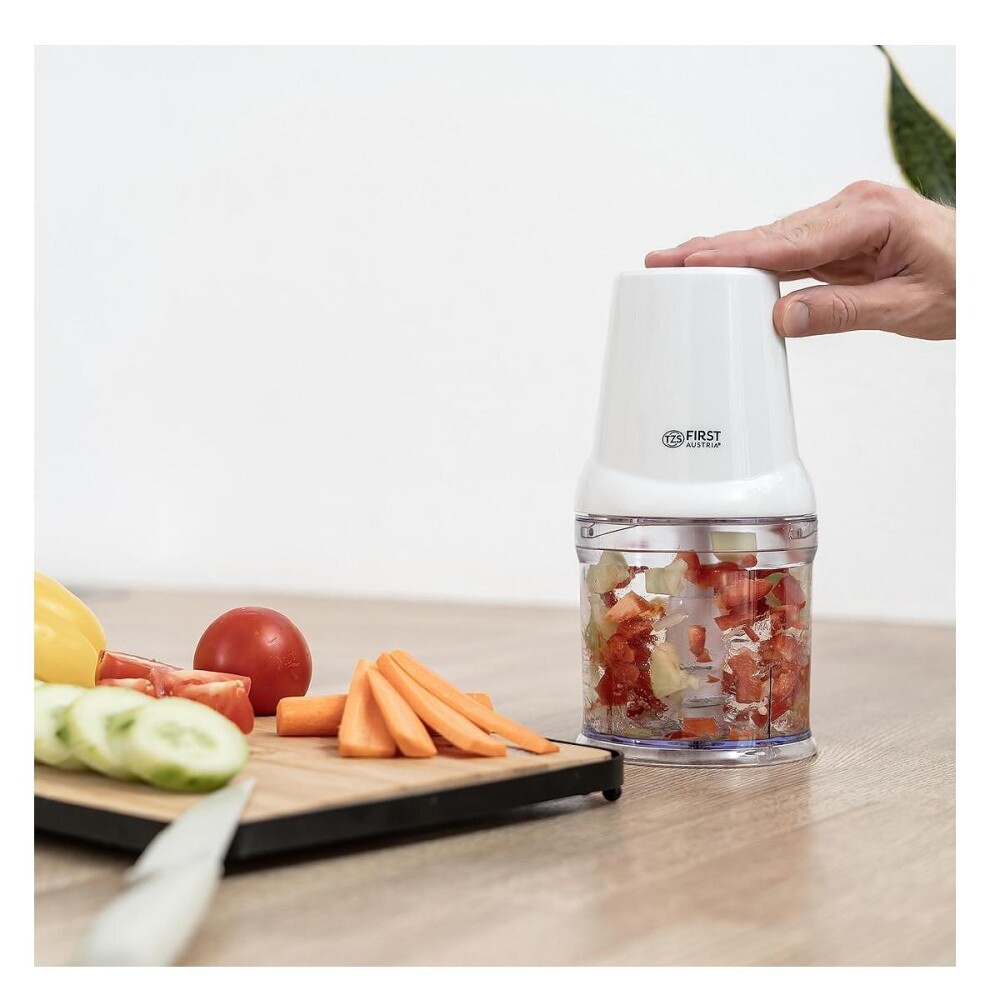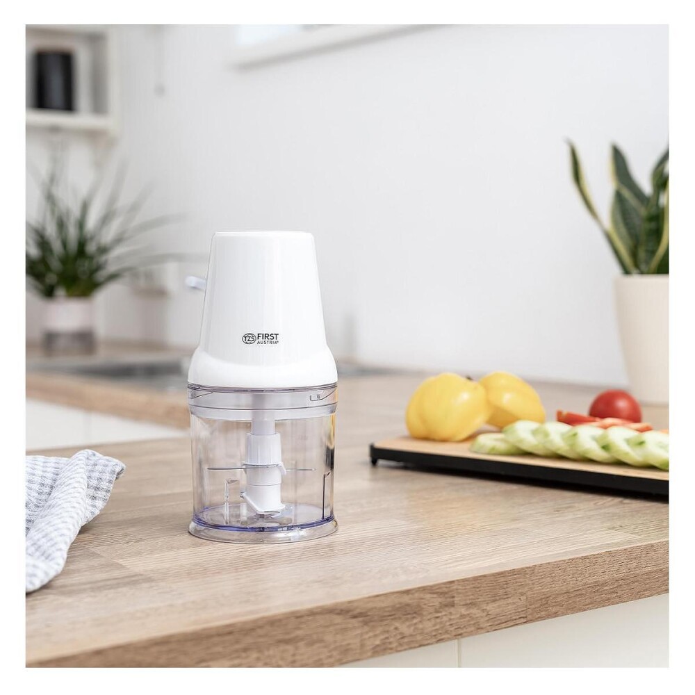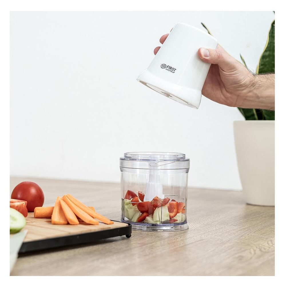 Компактен и ефективен чопър FIRST FA-5114-WI с мощност 400W, идеален за бързо и лесно нарязване на зеленчуци, плодове и други продукти. Разполага с купа с капацитет 0.5 литра, изработена от здрава пластмаса. Оборудван е с четири остриета от неръждаема стомана за прецизно рязане и работи с едно ниво на скорост. Този уред е лек и компактен, което го прави лесен за съхранение и използване във всяка кухня.